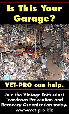 I announce today the formation of the Vintage Enthusiast Teardown Prevention and Recovery Organization (VET-PRO). VET-PRO will fight for vintage teardown victims, conduct critical research on how to control this debilitating disease, and work to establish guidelines for the care and feeding of chronic sufferers. But we can’t do it alone. We need your help.